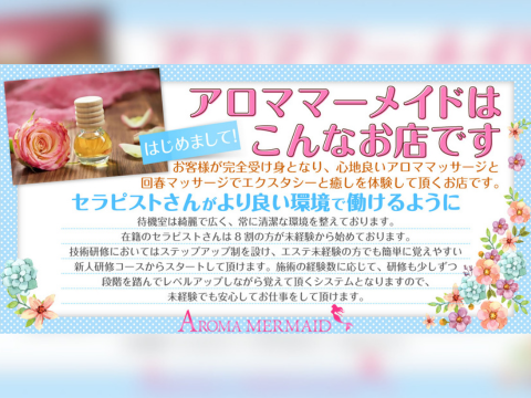 ヘルスサービス一切無し!性病リスク0宣言!高級エステだからお仕事単価も桁違いです!【AromaMermaid】